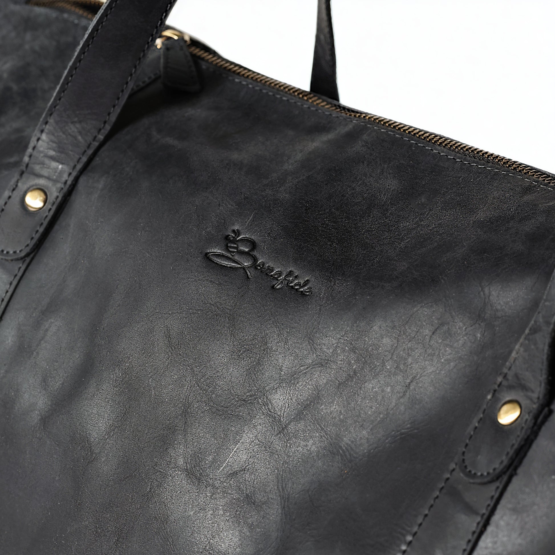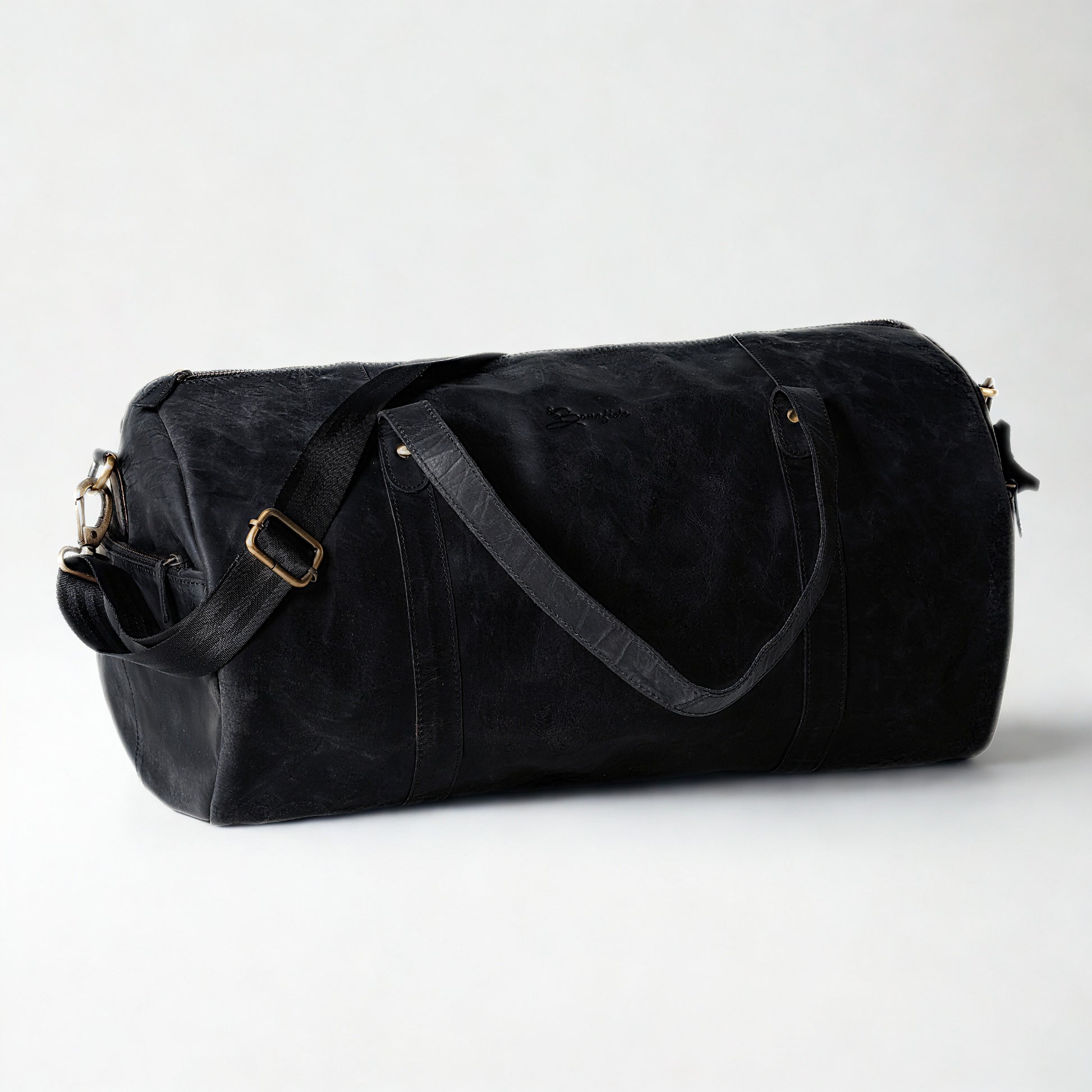 Premium Black Leather Duffle Bag | Bee Bonafide