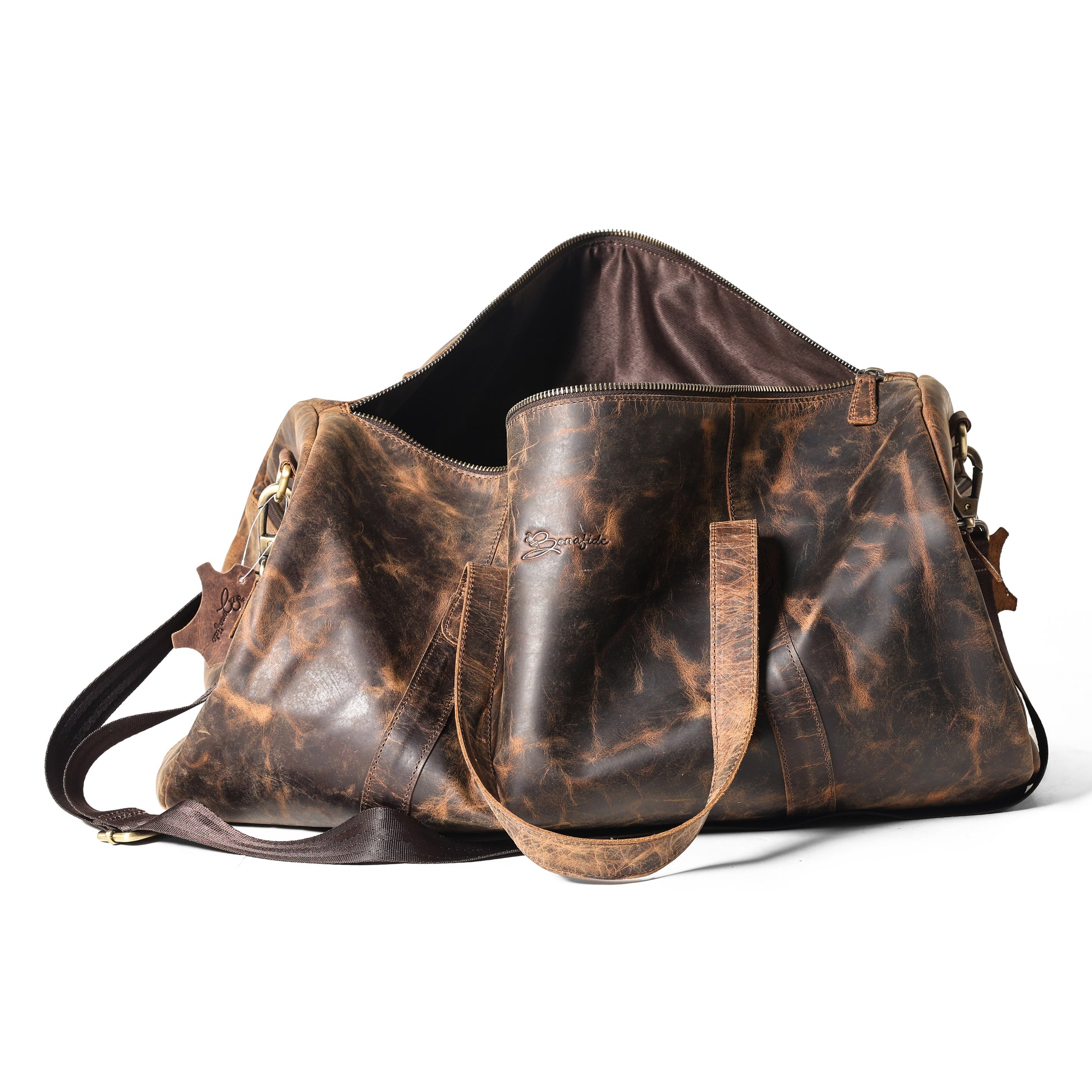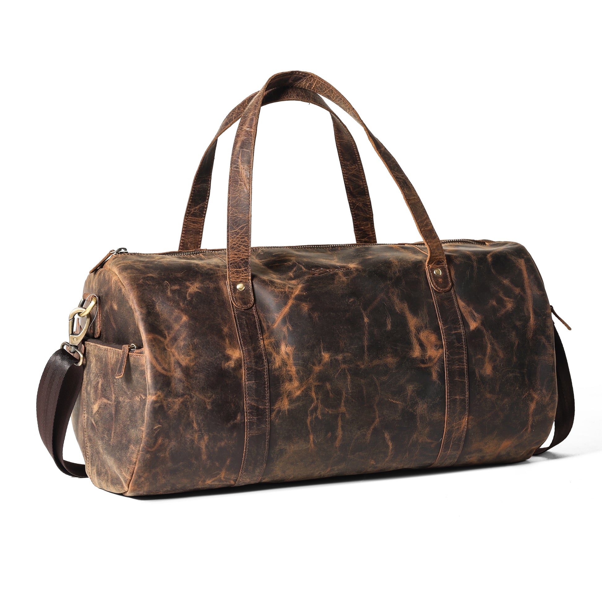 - STORAGE AND USE: Size 18" L x 10" H x 10" Depth in inches, the bag has one main compartment for clothes along with, One Internal Zipper and internal sections for cards/pens and cell phone. This bag can be used as a Gym Bag, Leather Travel Bag, Sports bag, Weekend bag, Cabin, Camping Bag